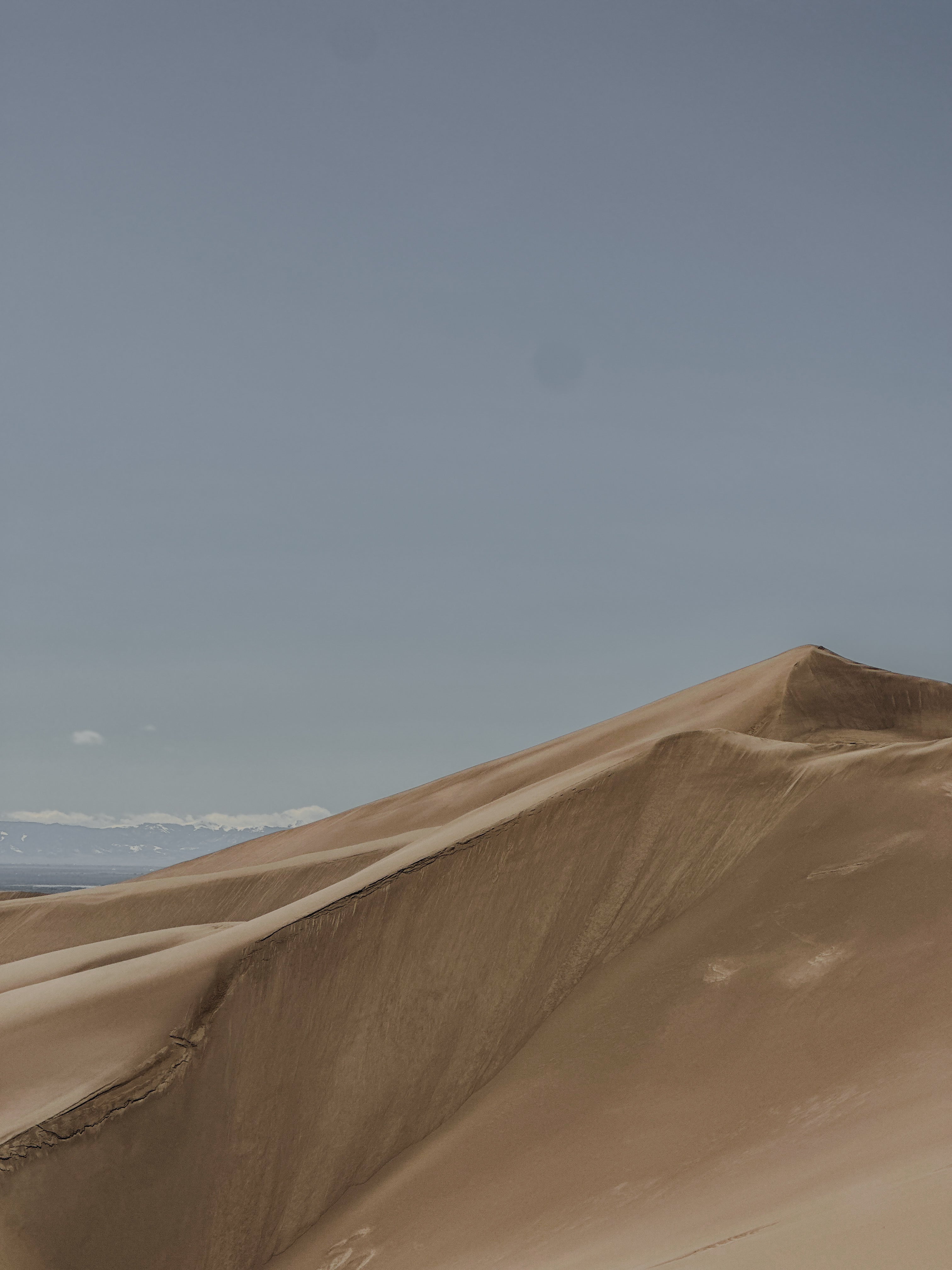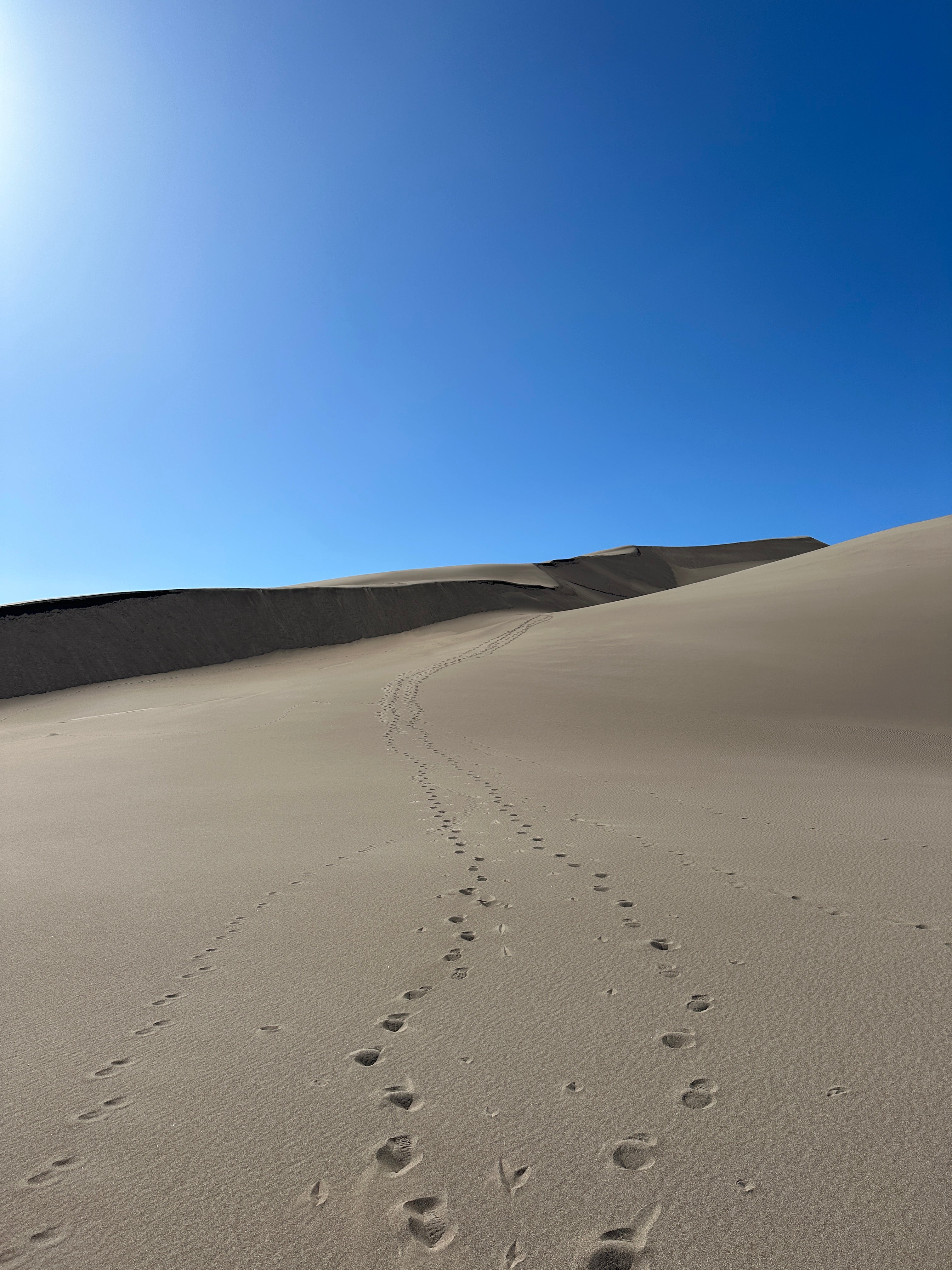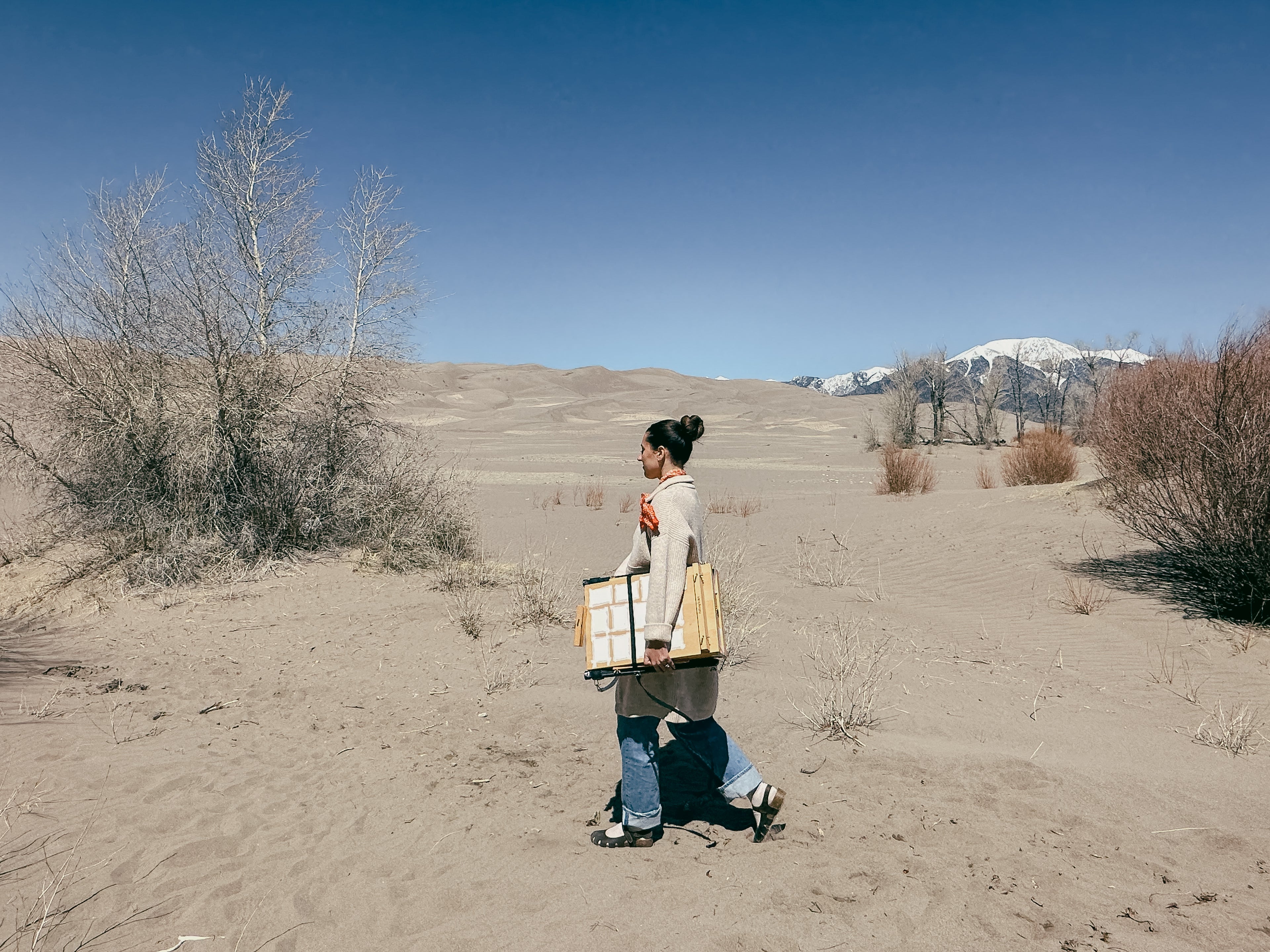 For the first stop on the second leg of the trip, we found ourselves at Great Sand Dunes, looking at promises for the upcoming weekend: a good painting location, hikes, and new beautiful scenery. We pulled into a quiet parking lot and got out. I stretched my neck to see the top of the dunes, barely visible. From the view of our campsite, we could see the dunes, but they looked unimportant, insignificant even, compared to the blue mountains hugging their shoulders. But now, it was I who felt small and insignificant, standing in front of the towering and vast piles of sand.