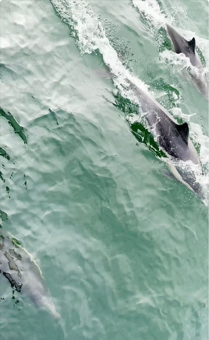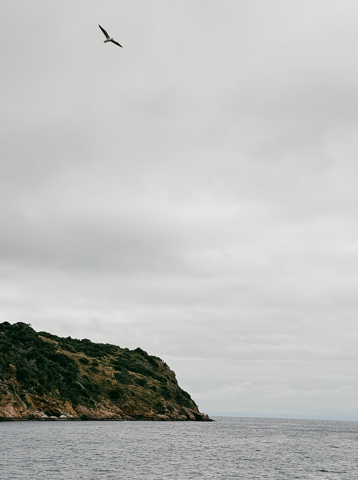 Across the ocean is an island—our destination. Standing on the bow, watching the waves. The bitter air turns our cheeks and noses red, freezing in the breeze. But not wanting to miss a thing, for we would have missed things: the dolphins glide, a raised fluke of a whale, and sea lions holding each other tight. And soon, in the misty haze, an island appears—Santa Cruz. Barely touched by man, luscious forest, and the prettiest little flowers thriving, untrammeled from the absence of structures and steps.