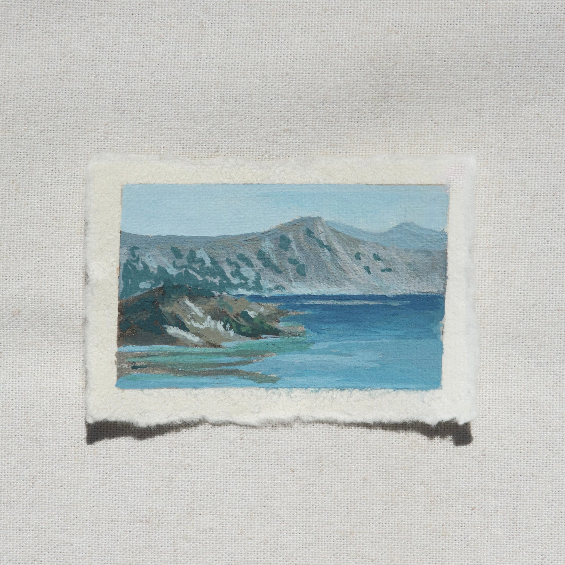 The original second artwork of the subcollection: XIII: A Reflection , part of The Journey Collection. Painted in Crater Lake National Park. Acrylic and Gouache on 100% cotton rag, deckled edge paper. Painting will be varnished once sold to preserve the life of the painting