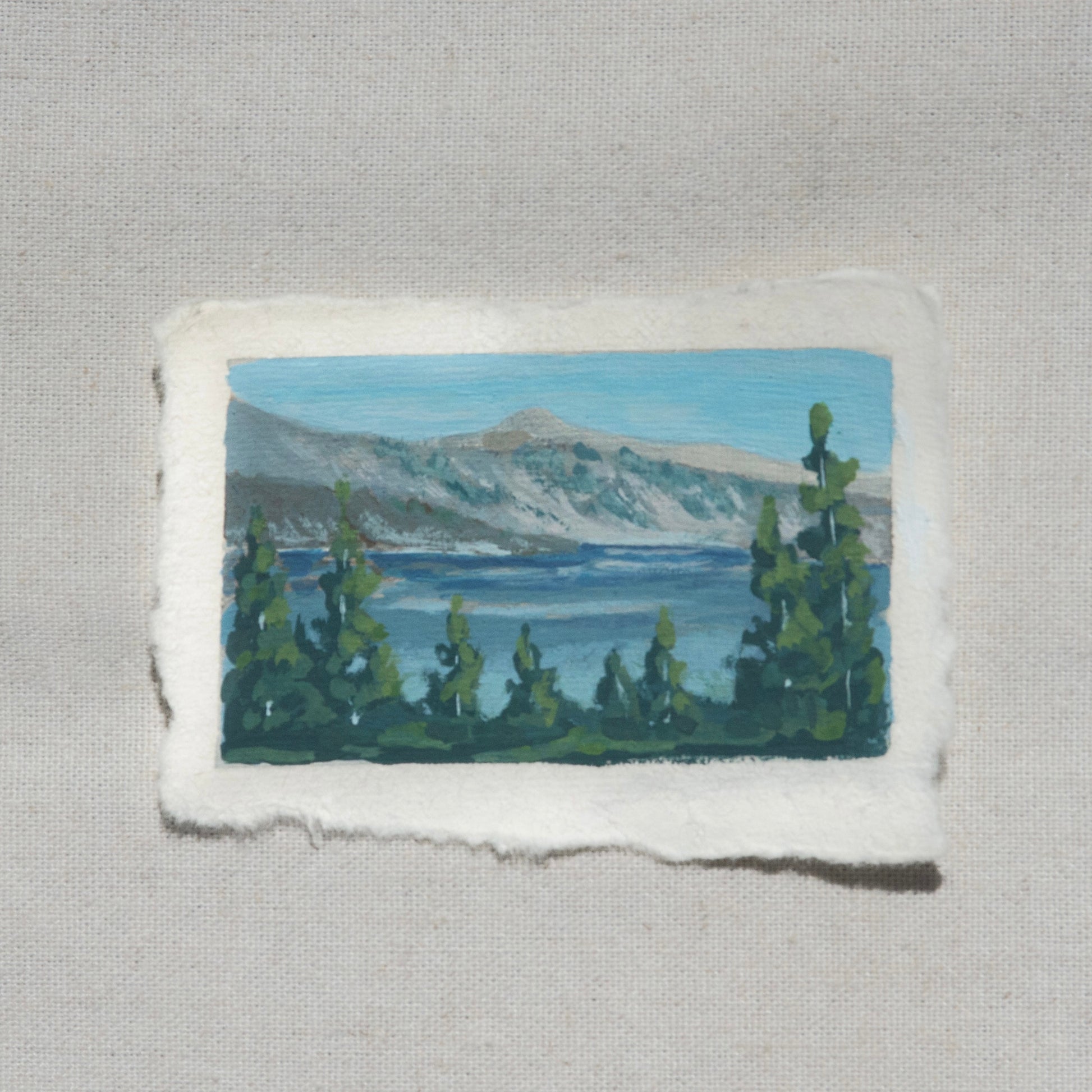 The original tenth artwork of the subcollection: XIII: A Reflection , part of The Journey Collection. Painted in Crater Lake National Park. Acrylic and Gouache on 100% cotton rag, deckled edge paper. Painting will be varnished once sold to preserve the life of the painting