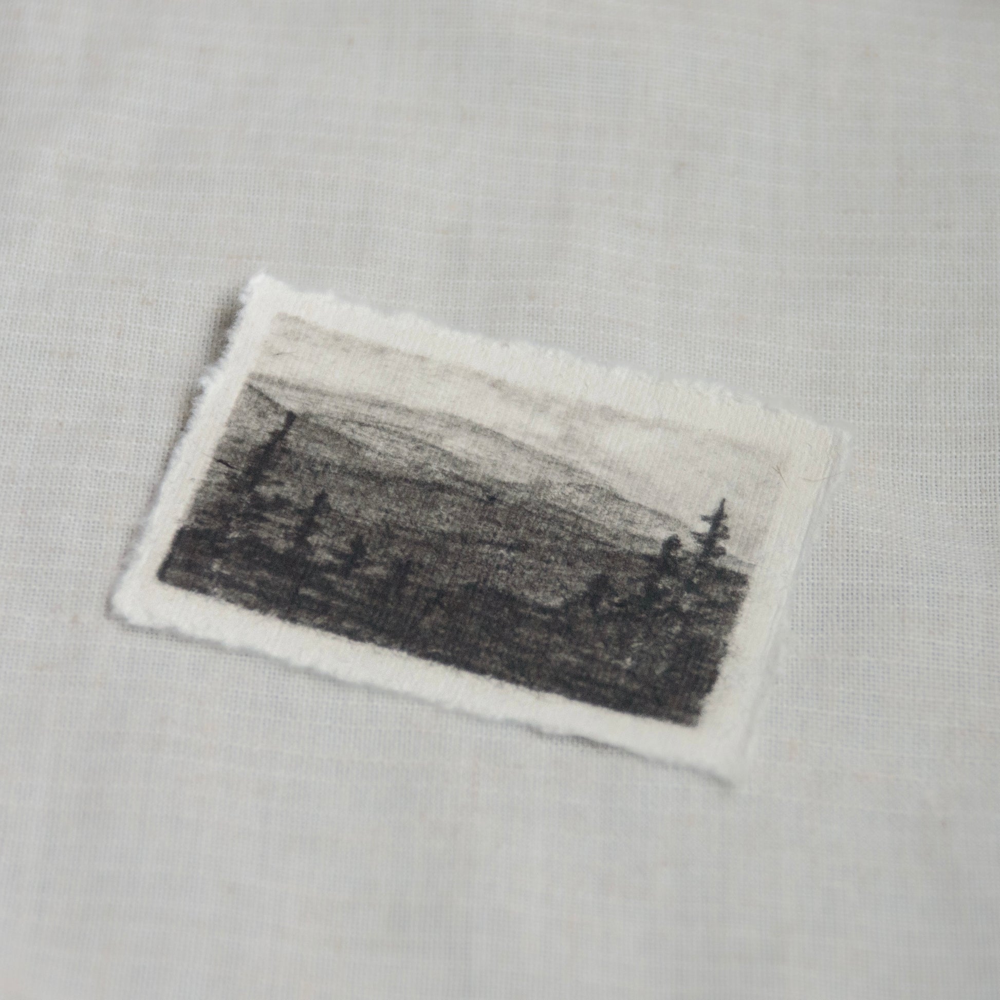Artwork: 2"x 3", due to the nature of the deckled edge paper, measurements may vary slightly.