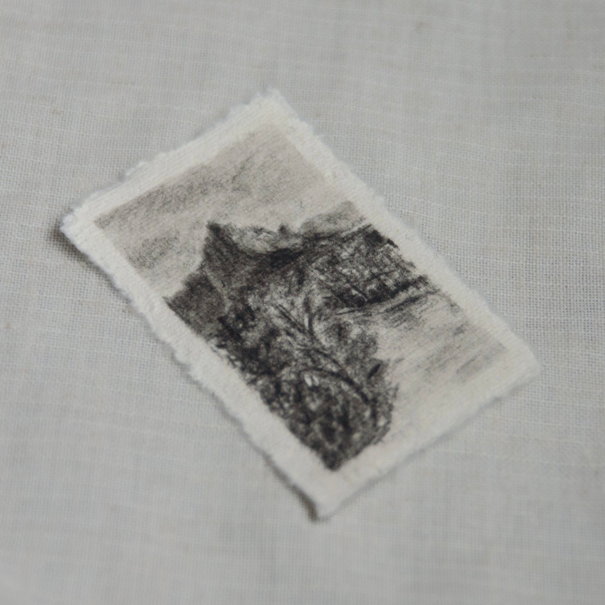 Artwork: 2"x 3", due to the nature of the deckled edge paper, measurements may vary slightly.