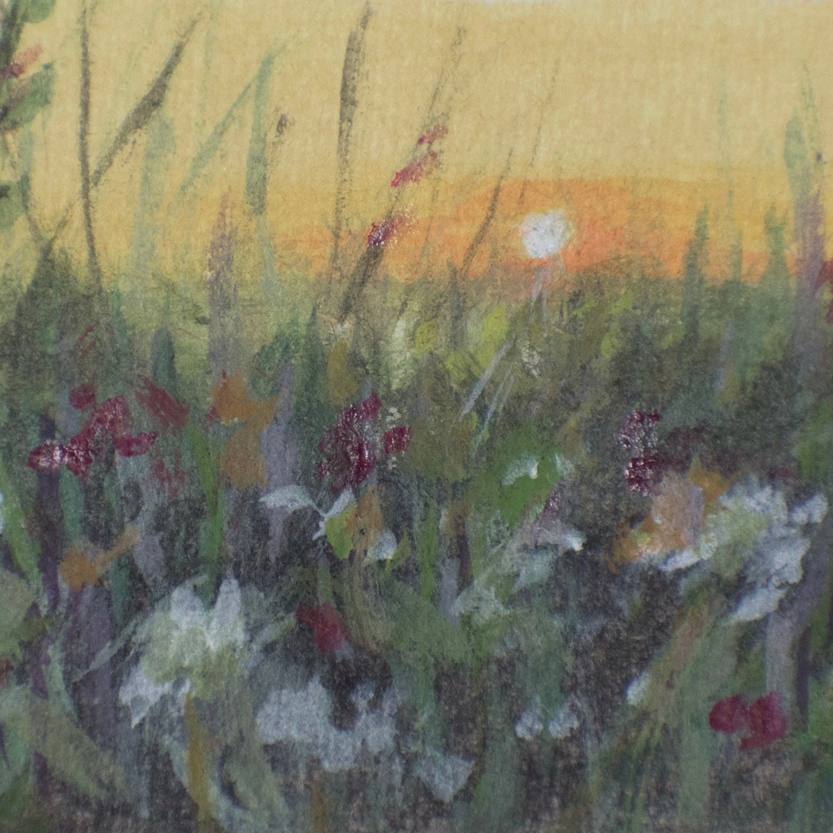 The original second artwork of the collection, “In Bloom” Gouache and Acrylic on 100% cotton rag, deckled edge paper. Painting is treated with varnish to preserve the life of the painting.