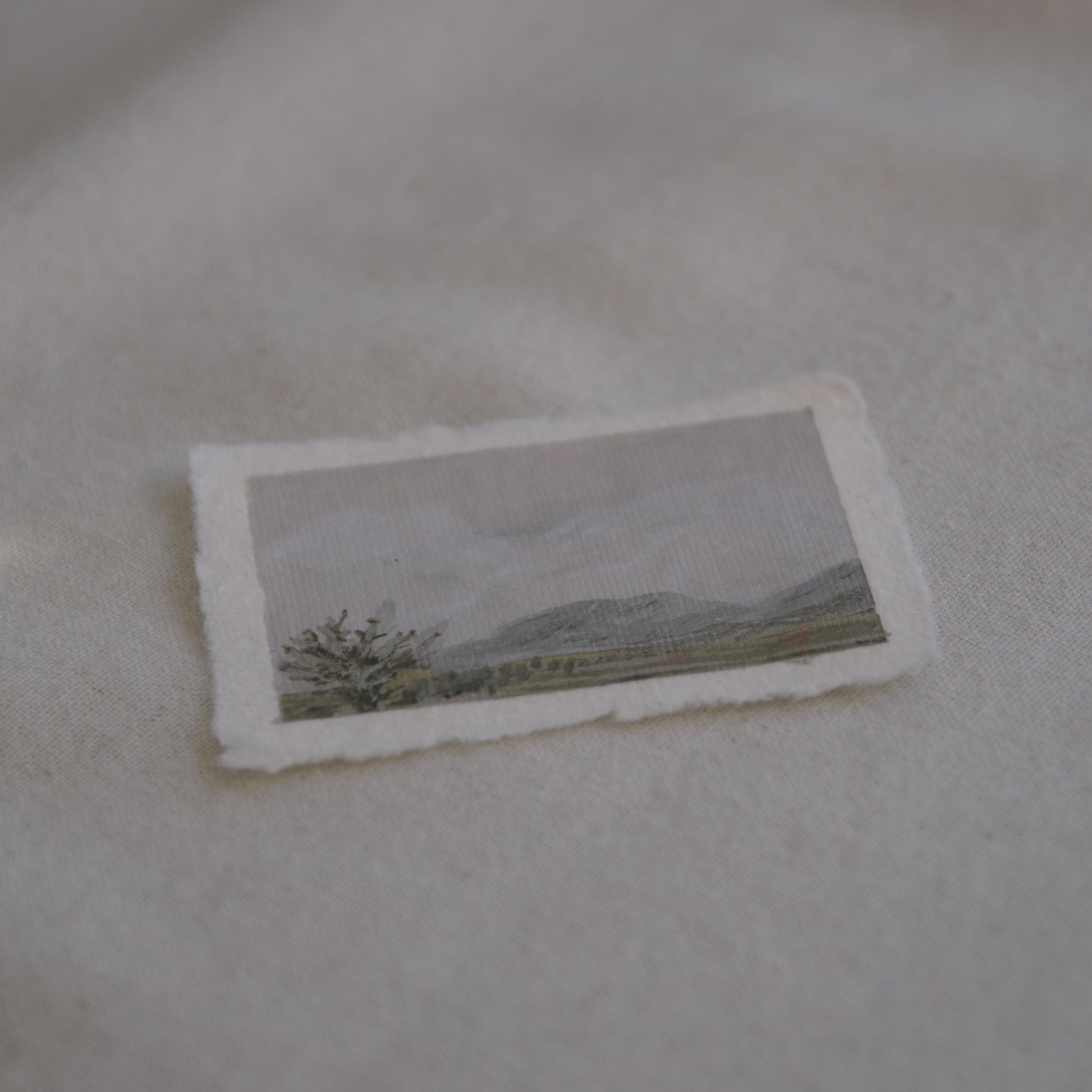 Artwork: 2"x 3", due to the nature of the deckled edge paper, measurements may vary slightly.