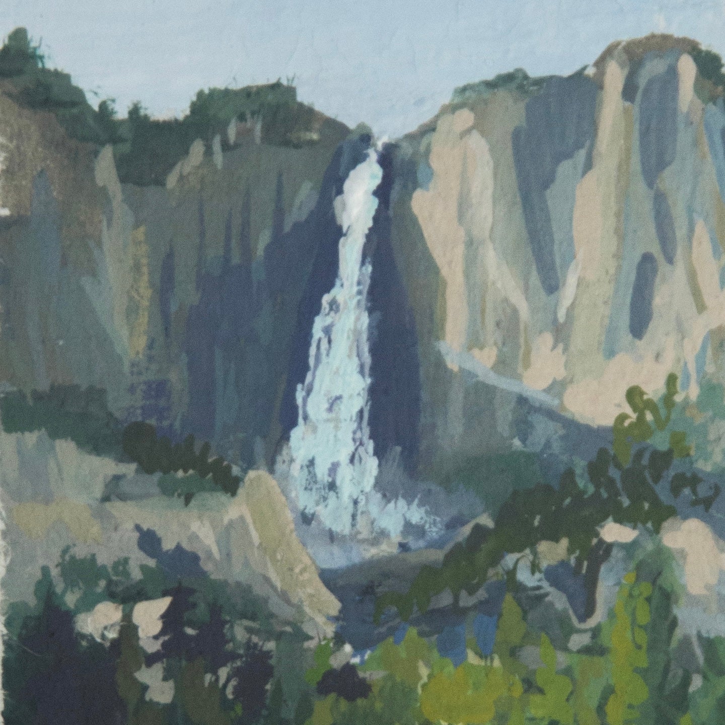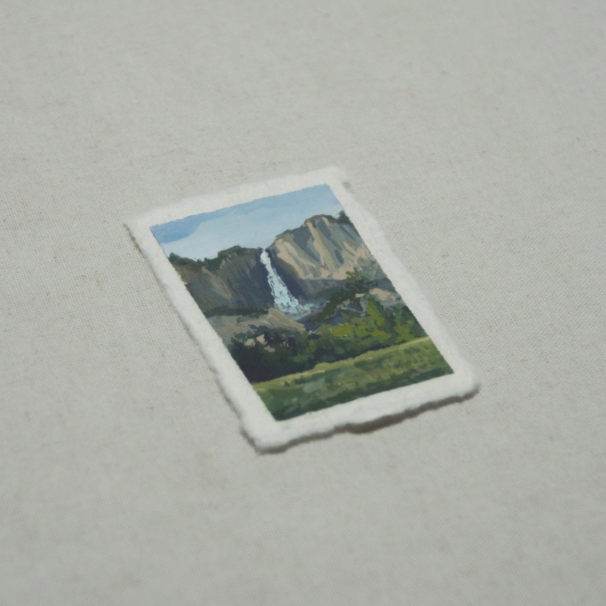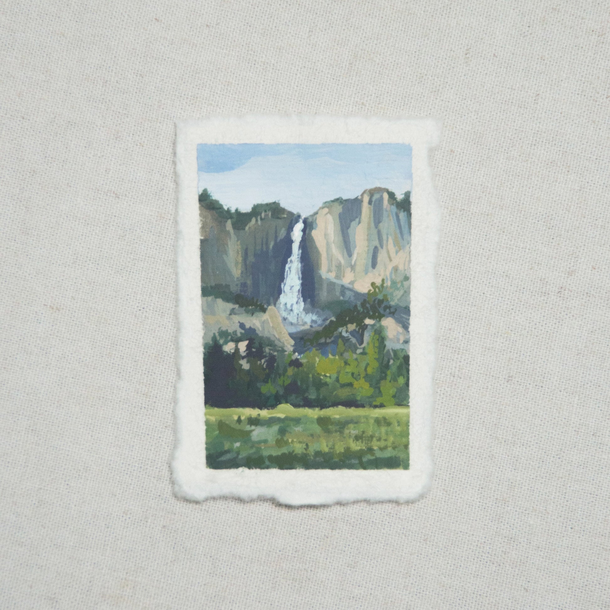 The original first artwork of the subcollection: IX: Timeless, part of The Journey Collection. Painted in Yosemite National Park of Upper Yosemite Falls. Gouache on 100% cotton rag, deckled edge paper.