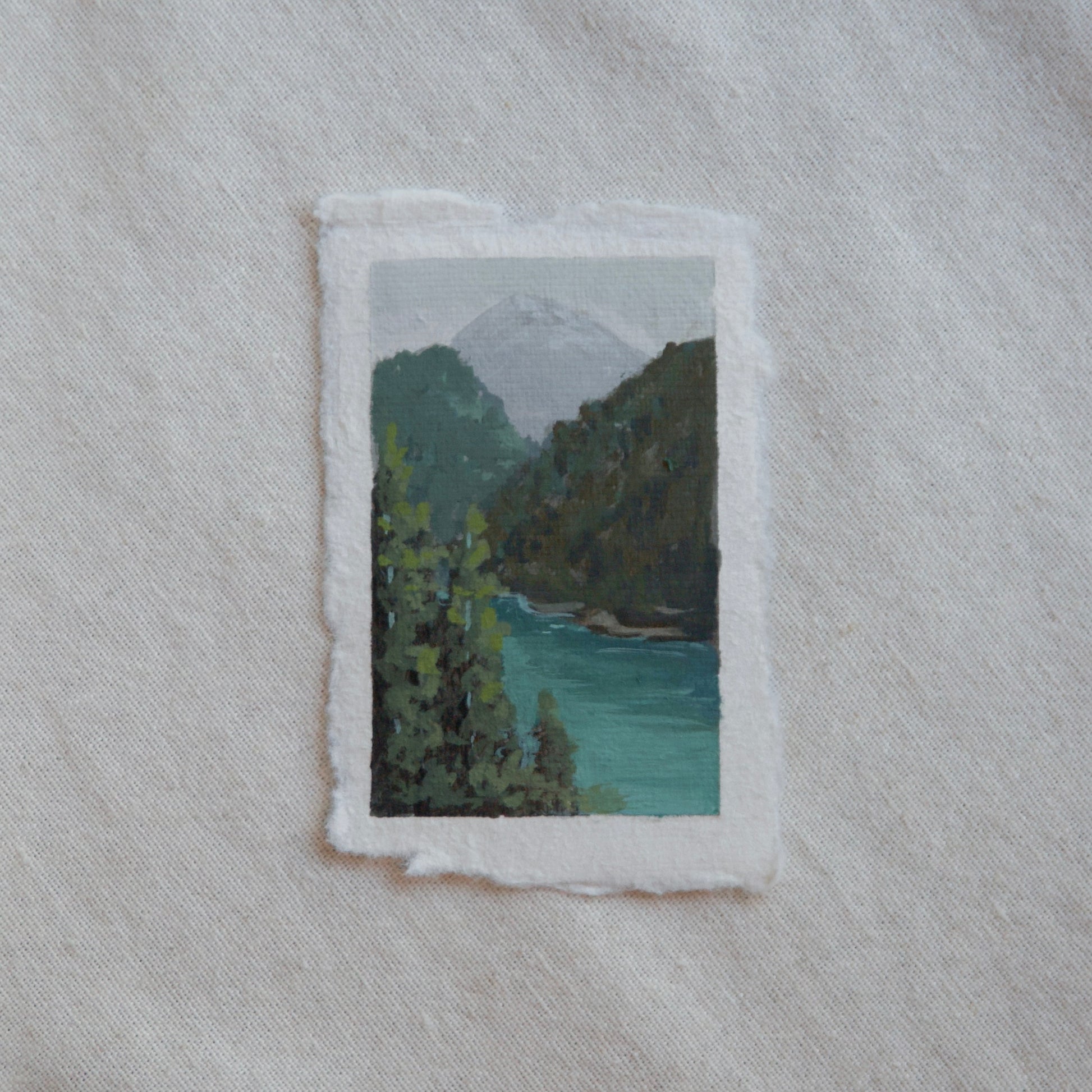 The original artwork of the subcollection: ‘XVI: Soft Undoing,’ part of The Journey Collection. Painted in North Cascades National Park. Acrylic and Gouache on 100% cotton rag, deckled edge paper. Painting will be varnished once sold to preserve the life of the painting