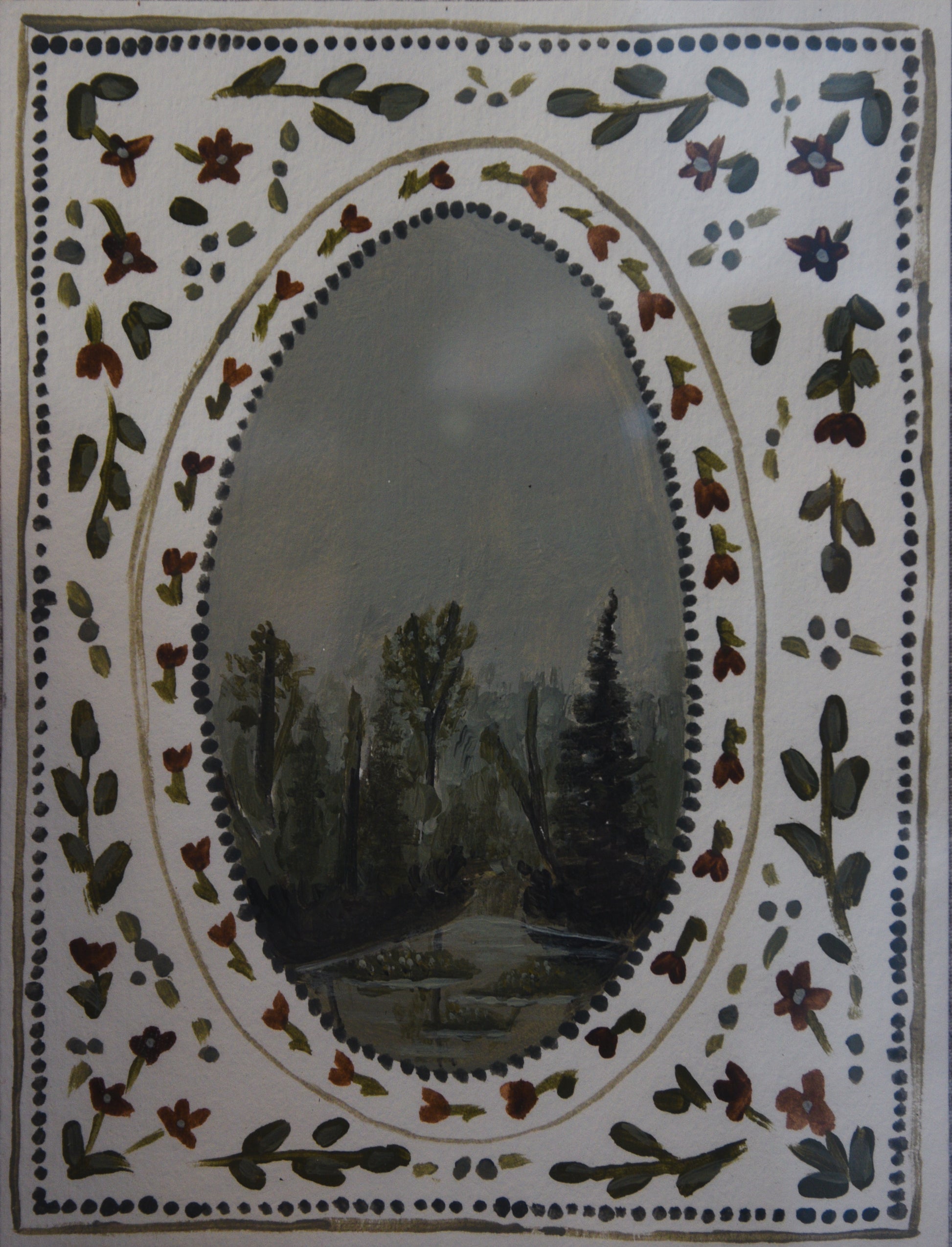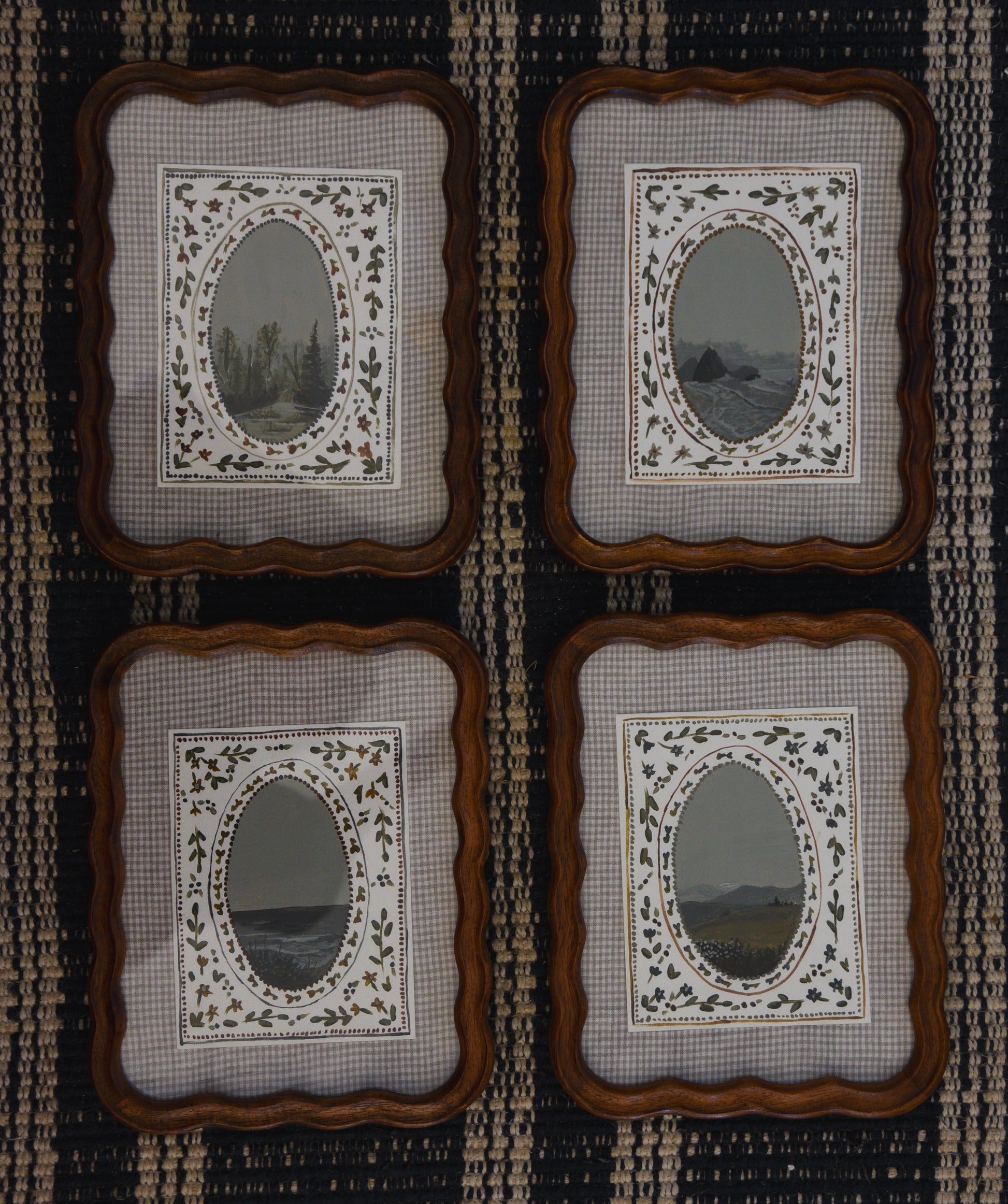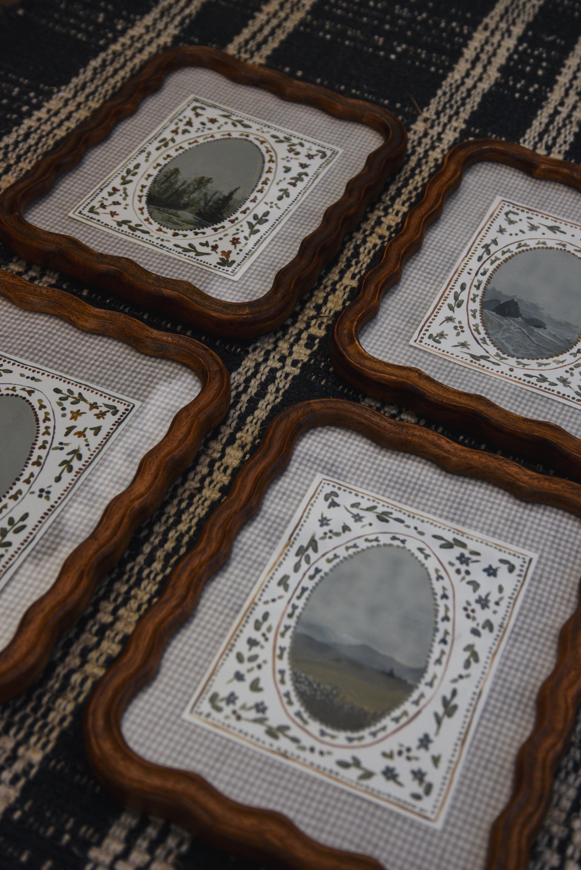 Paintings will be sold as a set, framed, with handmade linen fabric mat.