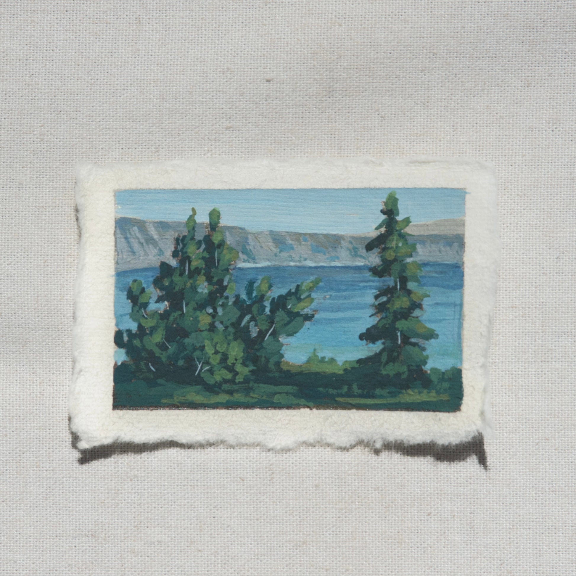 The original ninth artwork of the subcollection: XIII: A Reflection, part of The Journey Collection. Painted in Crater Lake National Park. Acrylic and Gouache on 100% cotton rag, deckled edge paper. Painting will be varnished once sold to preserve the life of the painting