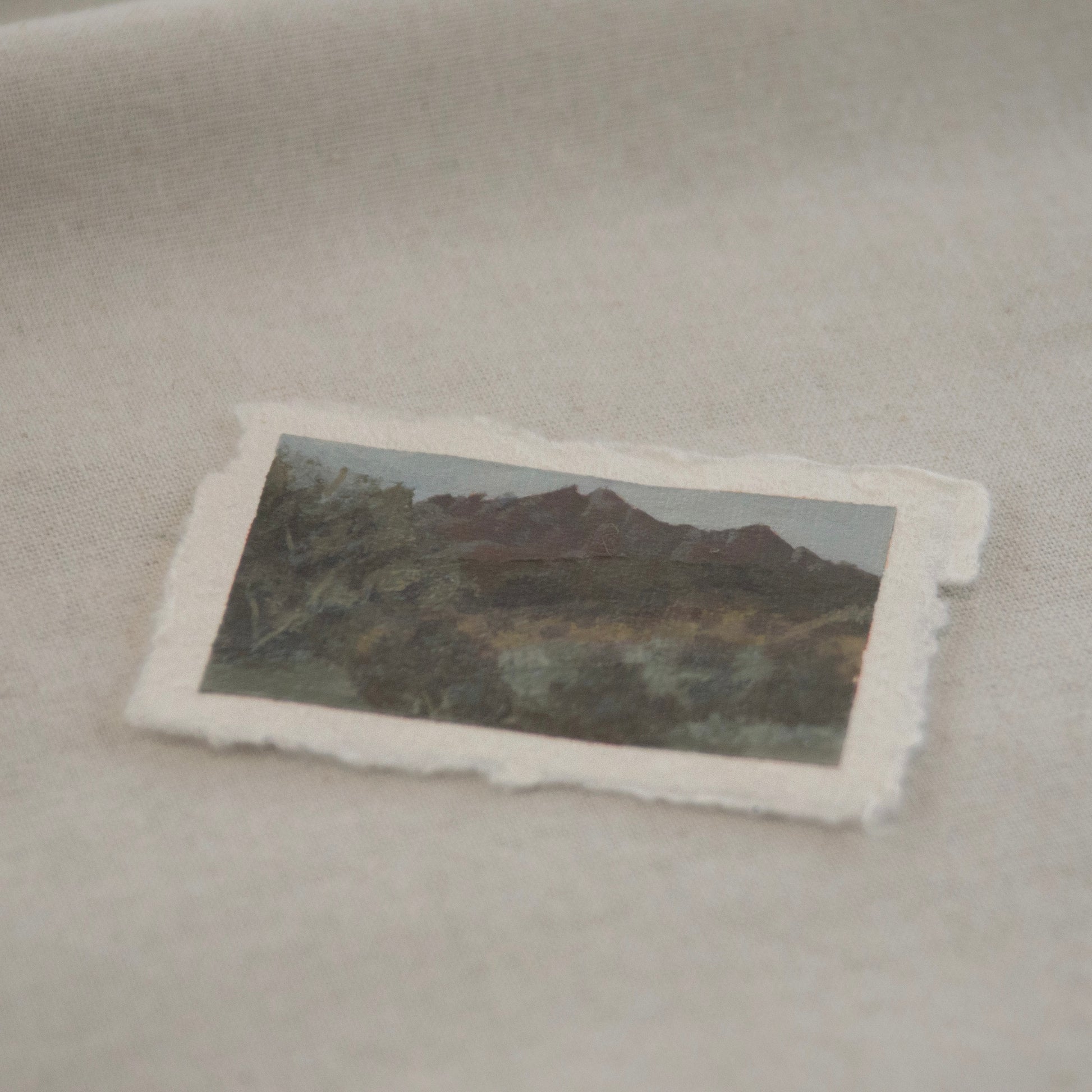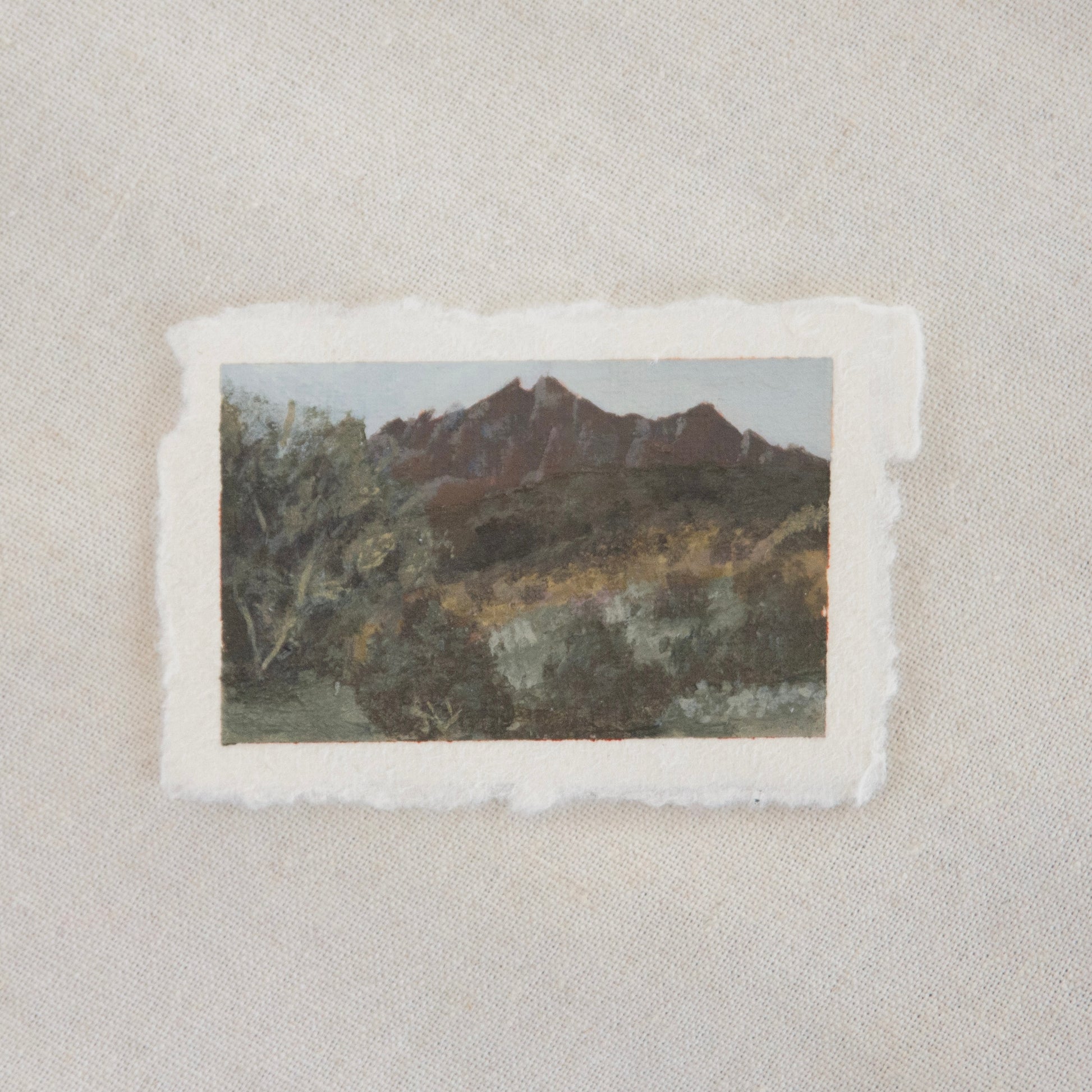 Artwork: 2"x 3", due to the nature of the deckled edge paper, measurements may vary slightly.