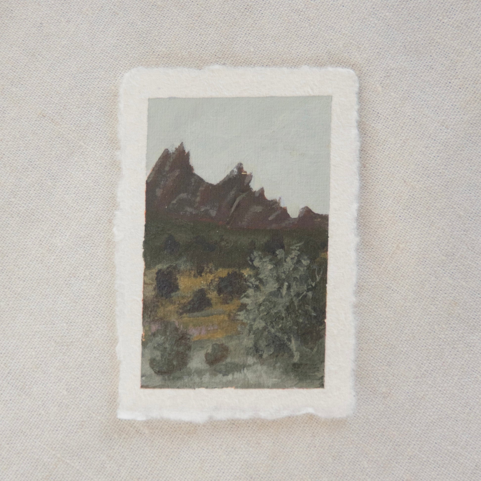 The original seventh artwork of the subcollection: VII: In Light Of, part of The Journey Collection. Painted en plein air in Pinnacles National Park. Acrylic on 100% cotton rag, deckled edge paper. Painting is treated with varnish to preserve the life of the painting.