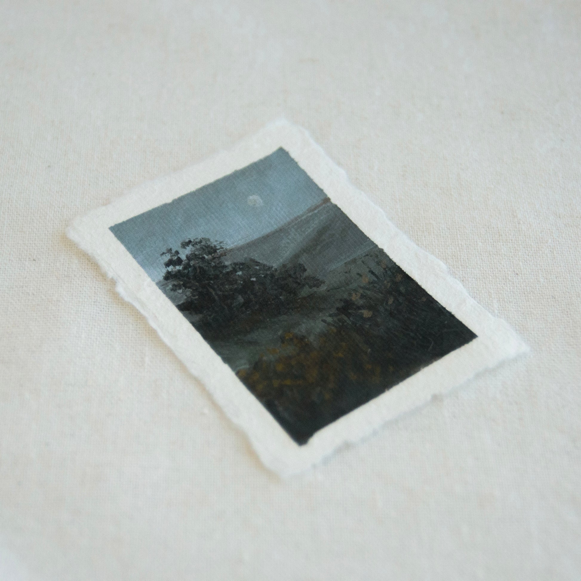 Artwork: 2"x 3", due to the nature of the deckled edge paper, measurements may vary slightly.