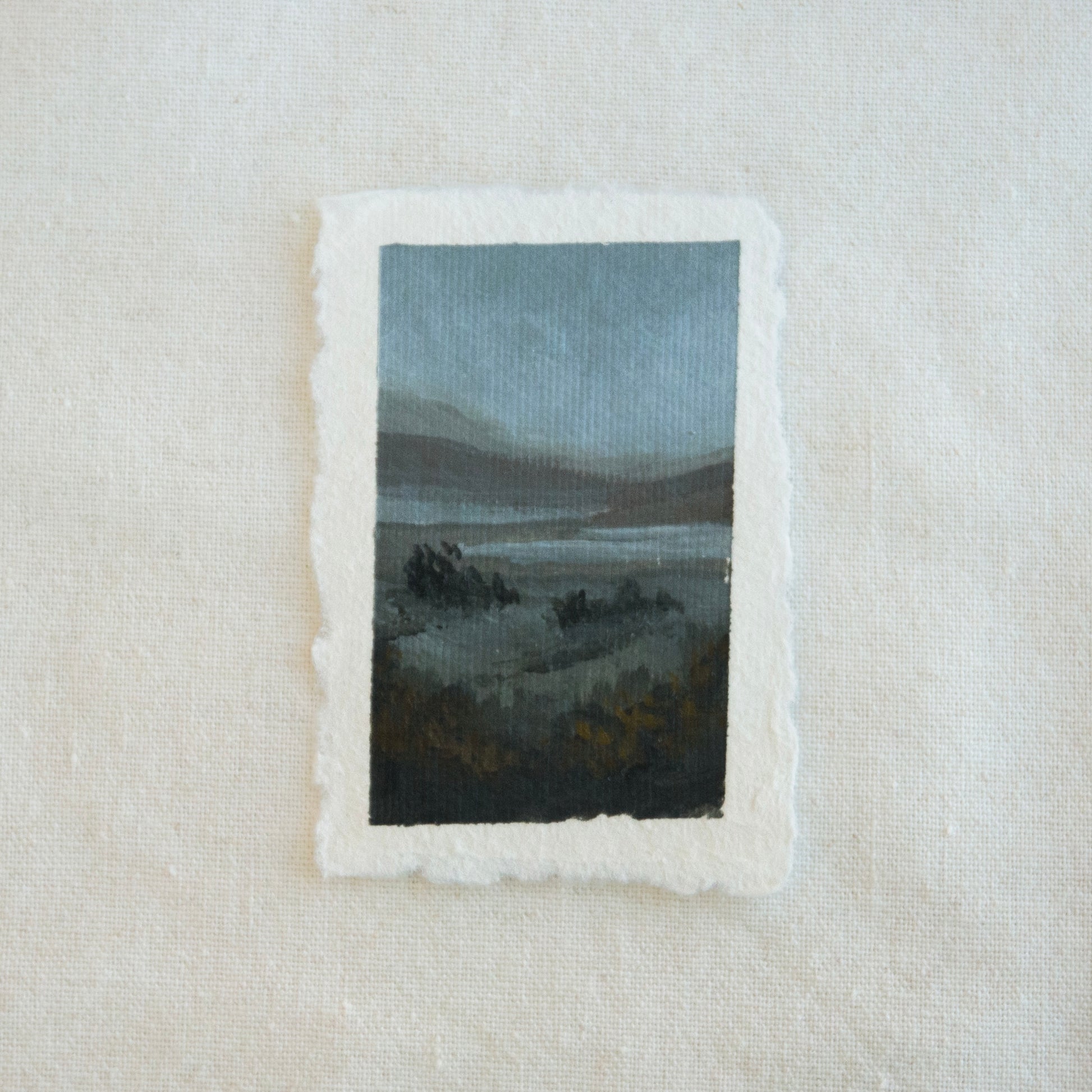 Artwork: 2"x 3", due to the nature of the deckled edge paper, measurements may vary slightly.