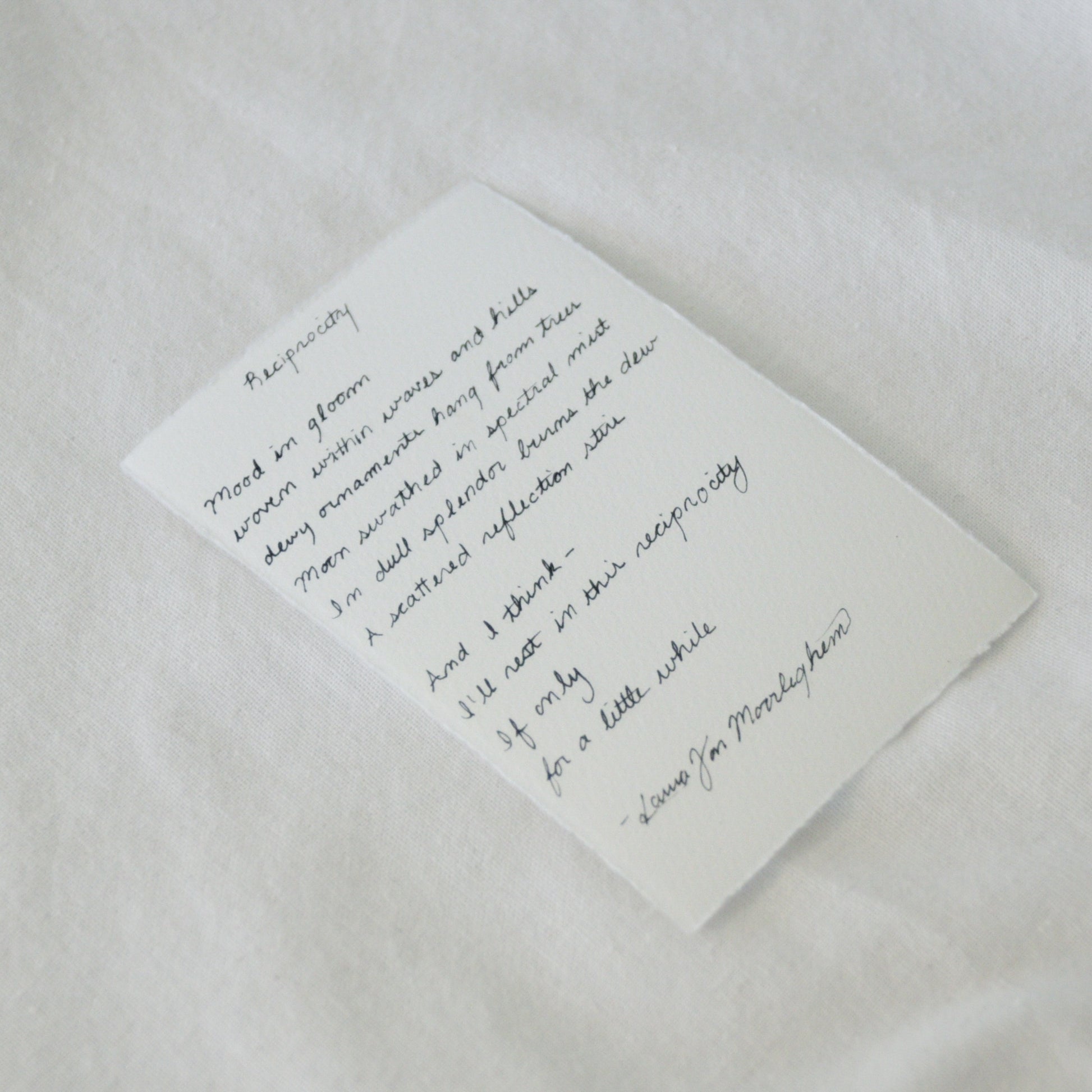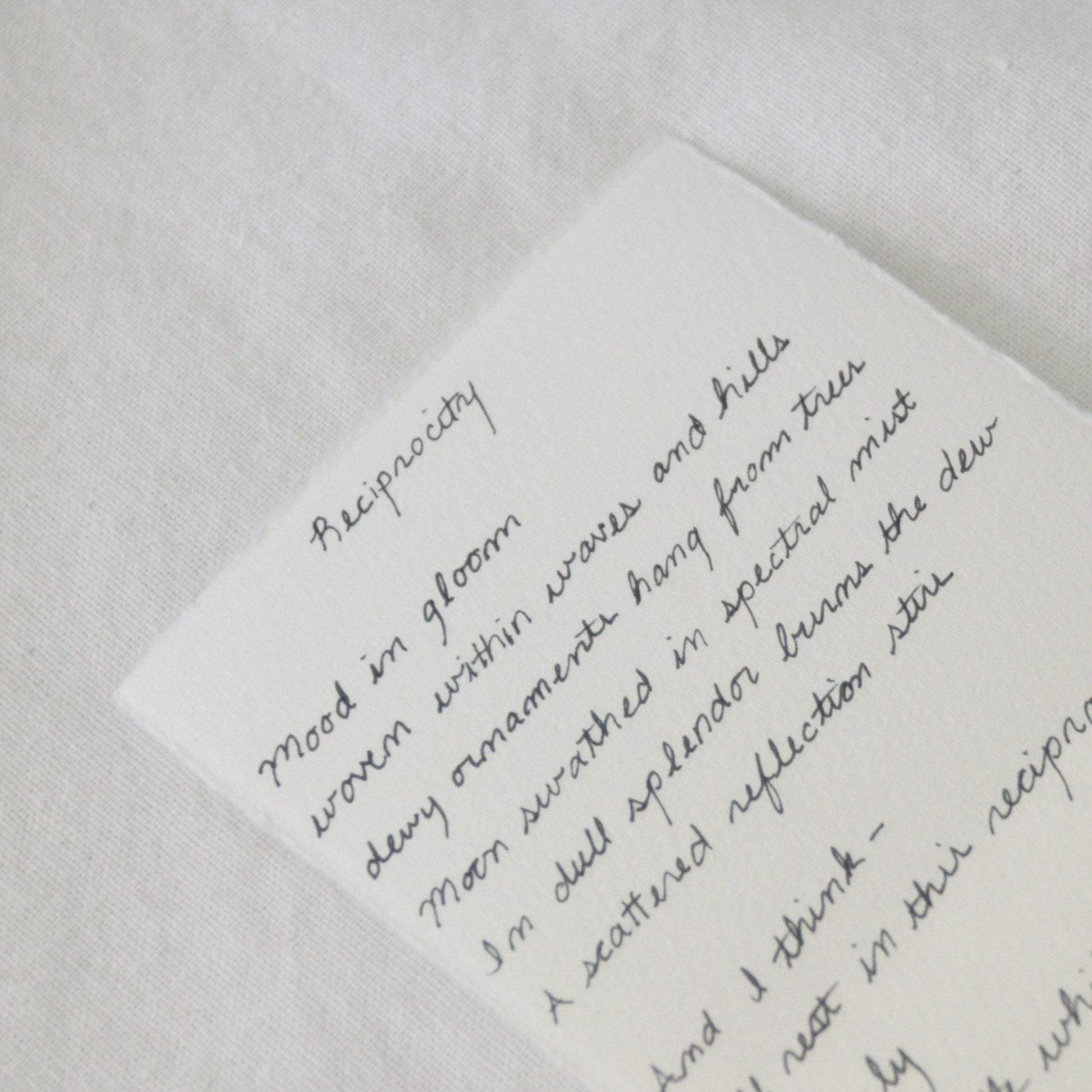 All originals will be sold with ‘Reciprocity’ poem, handwritten and signed, on 100% cotton rag, deckled edge paper.