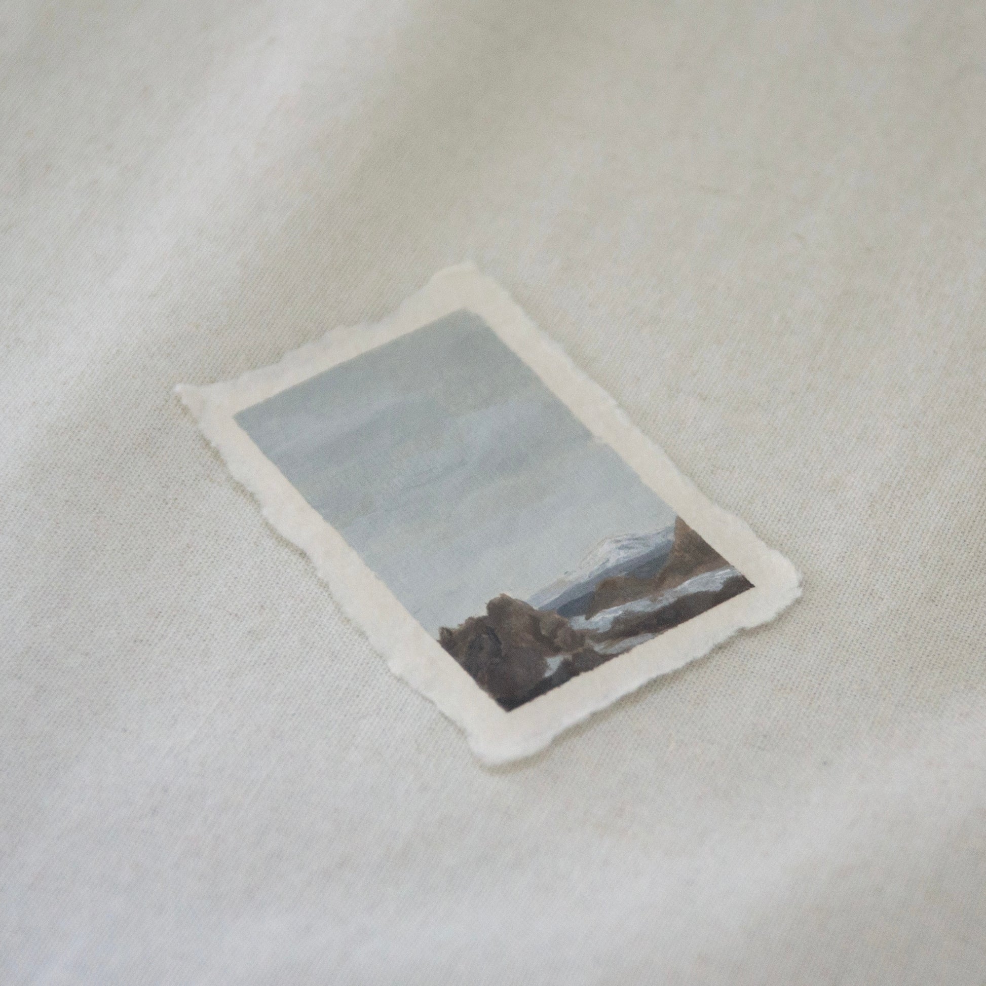 Artwork: 2"x 3", due to the nature of the deckled edge paper, measurements may vary slightly.