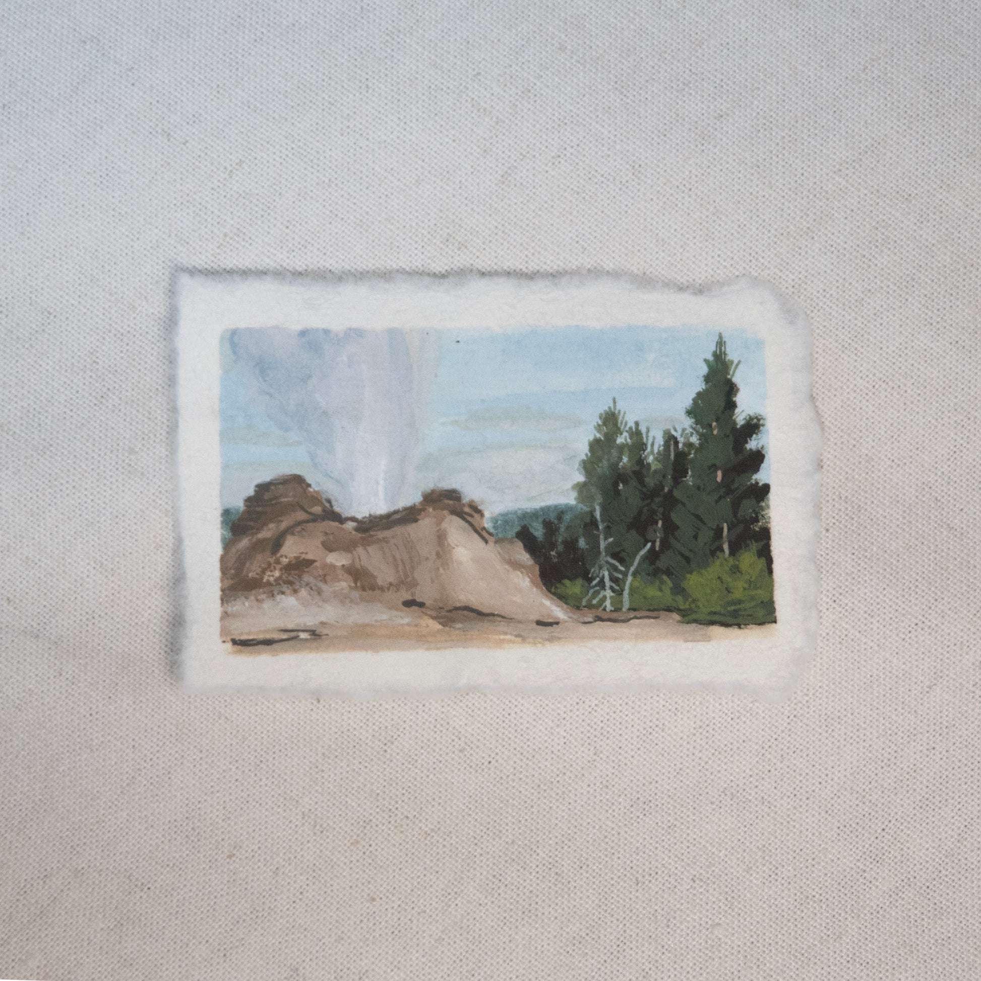 The original artwork of Castle Geyser for the subcollection: ‘XVIII: Where Water Rises’ part of The Journey Collection. Painted in Yellowstone National Park. Acrylic and Gouache on 100% cotton rag, deckled edge paper. Painting will be varnished once sold to preserve the life of the painting