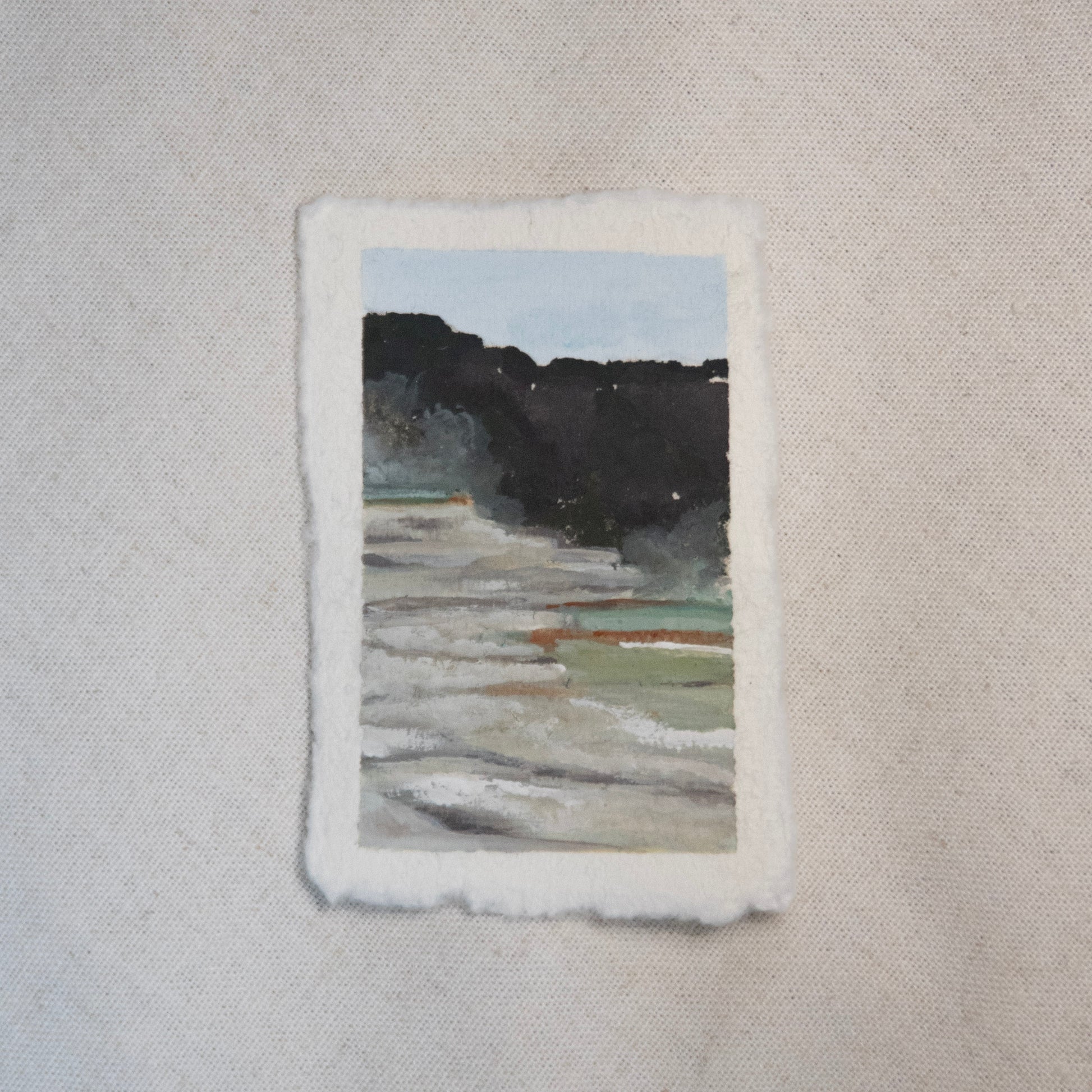 The original artwork of Mammoth Hot Springs for the subcollection: ‘XVIII: Where Water Rises’ part of The Journey Collection. Painted in Yellowstone National Park. Acrylic and Gouache on 100% cotton rag, deckled edge paper. Painting will be varnished once sold to preserve the life of the painting
